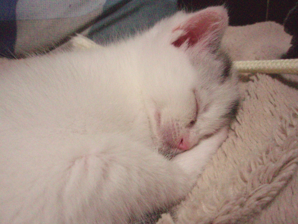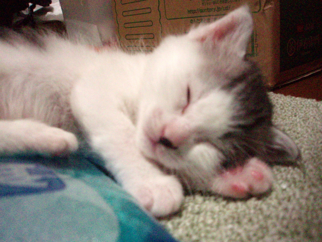 雄のムギよりも雌のナツネの方が元気があり、よくムギを枕にして寝ていたりする。